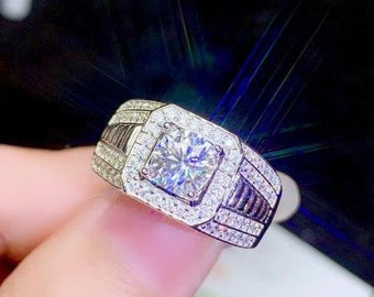 1 2ct Moissanite Diamond Mens Engagement Ring Silver Passes Etsy Uk In 2022 Engagement Rings For Men Engagement Rings Moissanite Diamonds